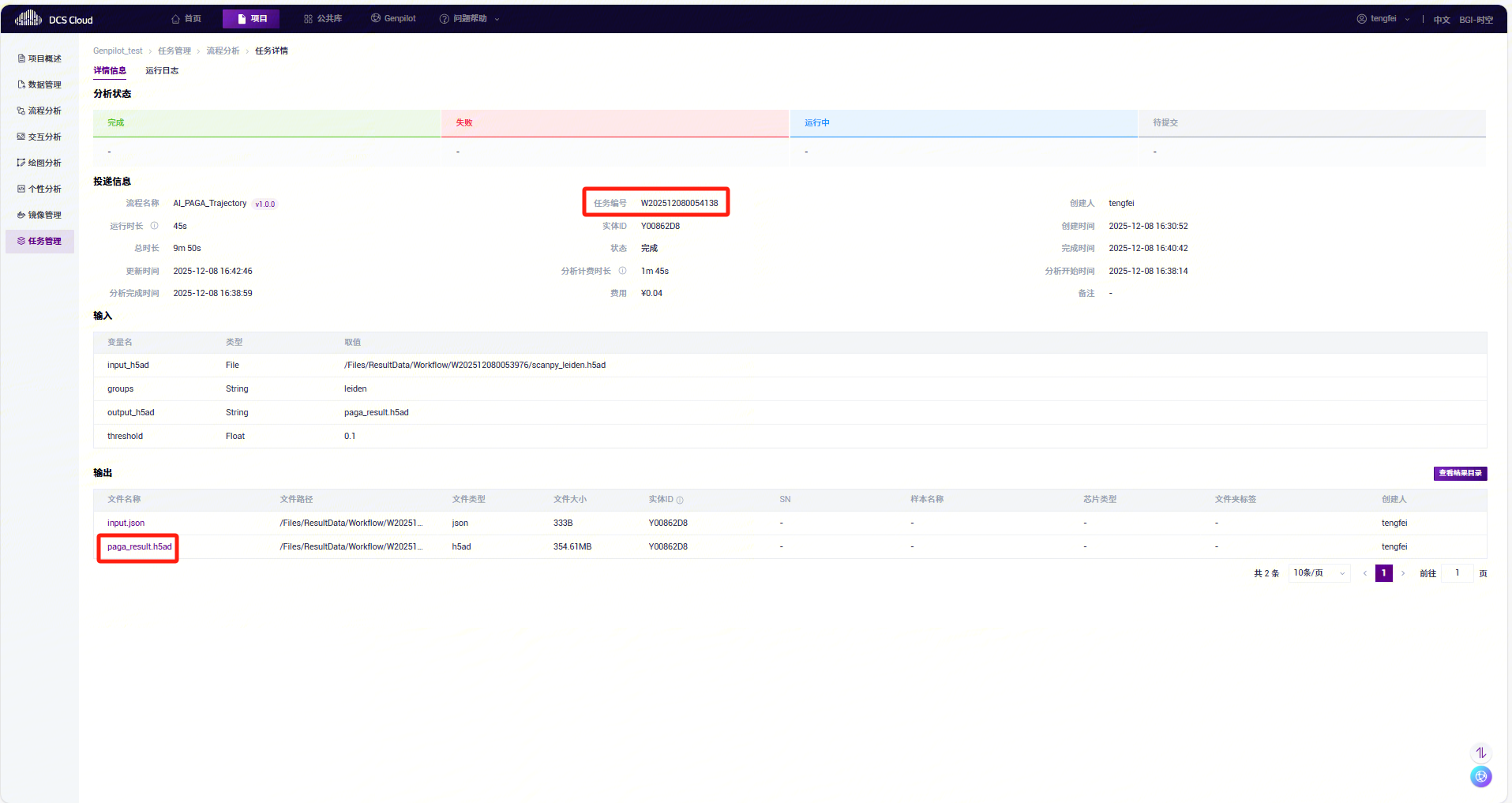 可以得到对应的任务编号下的运行结果,即为需要的结果。