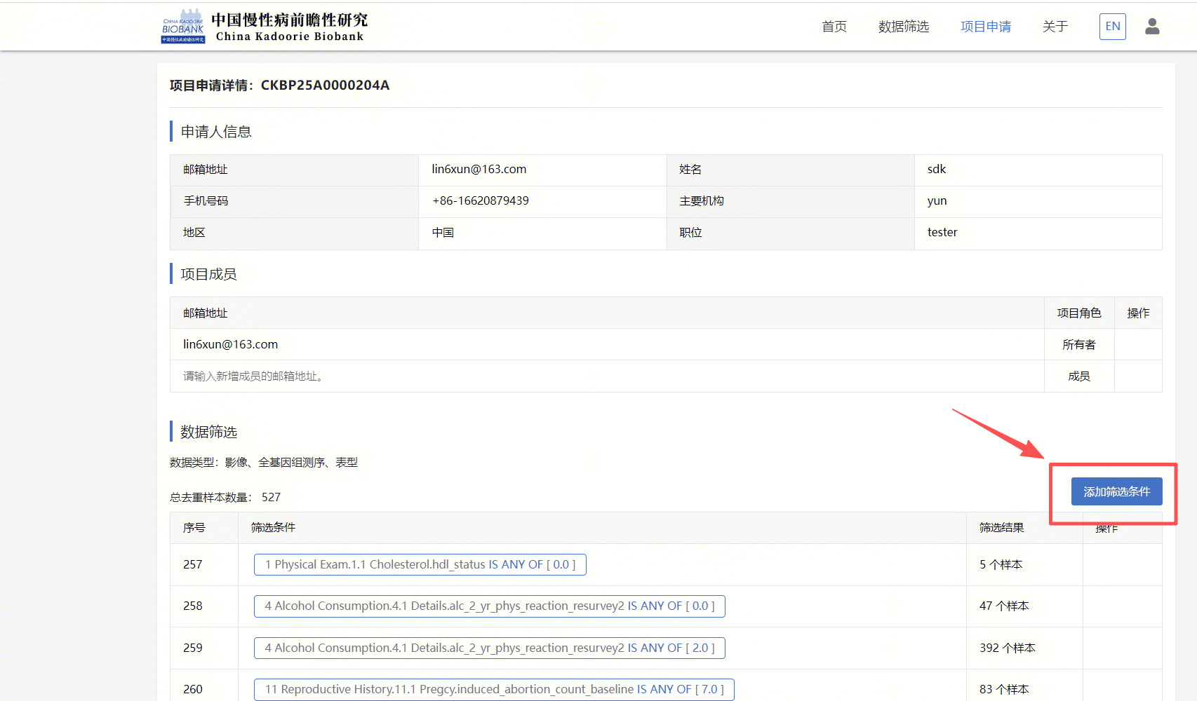 针对CKB-华北1片区的项目,支持在CKB门户追加表型数据,追加的数据审核通过后,云平台将自动更新表型数据集。