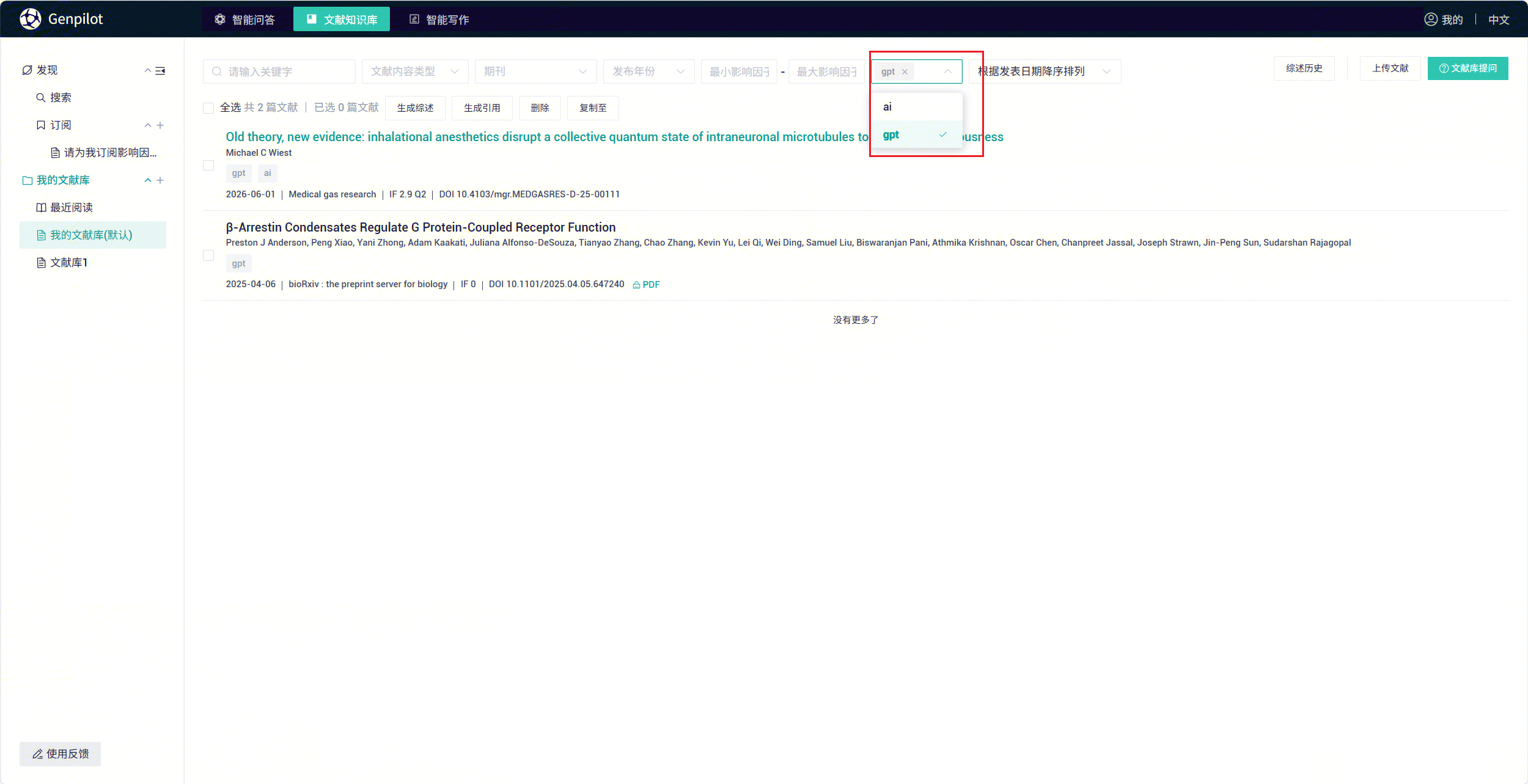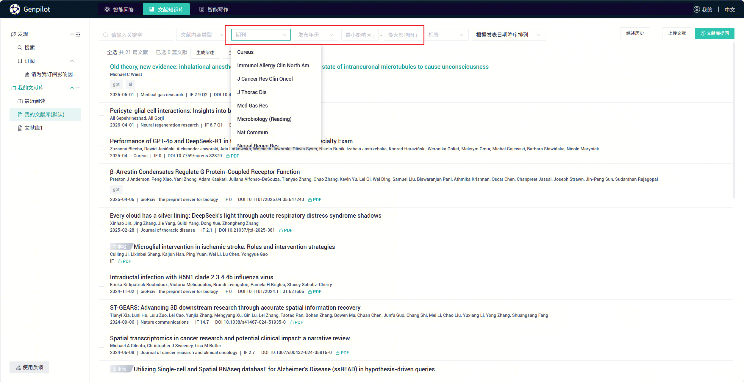 【优化】文献库支持按期刊、年份、影响因子筛选