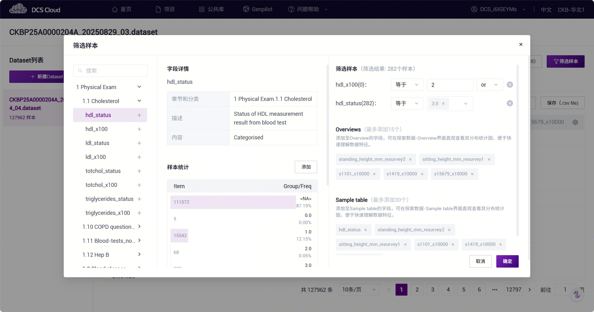 通过表型筛选样本时,支持查看所选表型数据分布情况,如下图: